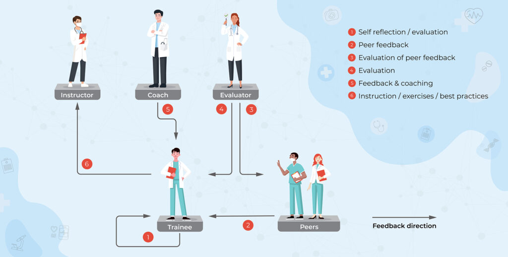 Evaluators can leverage established evaluation forms (e.g., OSCE, MAAS 2.0, OPTION5) for providing systematic feedback and grading